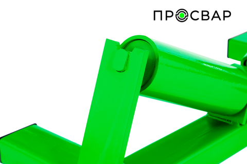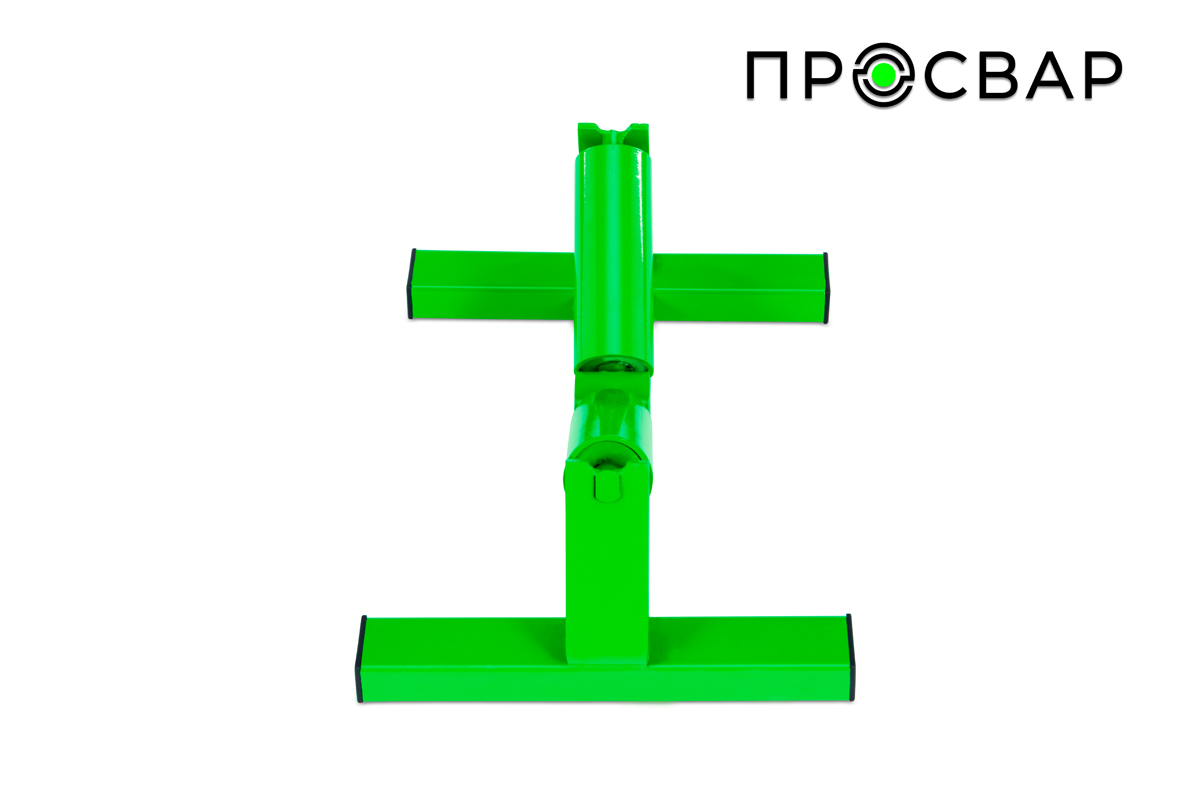 Компактная опорная стойка с двумя полиуретановыми роликами на регулируемых кронштейнах. Предназначена для поддержки труб малого и среднего диаметра (40–315 мм) при резке и сварке. Зеленая металлическая рама из профильной трубы с резиновыми накладками на основании обеспечивает устойчивость на ровной поверхности. Ролики легко вращаются, предотвращая прокручивание трубы. Идеальна для работы с трубами до 315 мм в цеху и на небольших объектах.