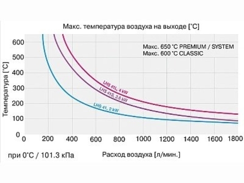 Параметры расхода воздуха и температуры могут отклоняться от идеальных значений в зависимости от используемых насадок, от длины шланга и т.п.